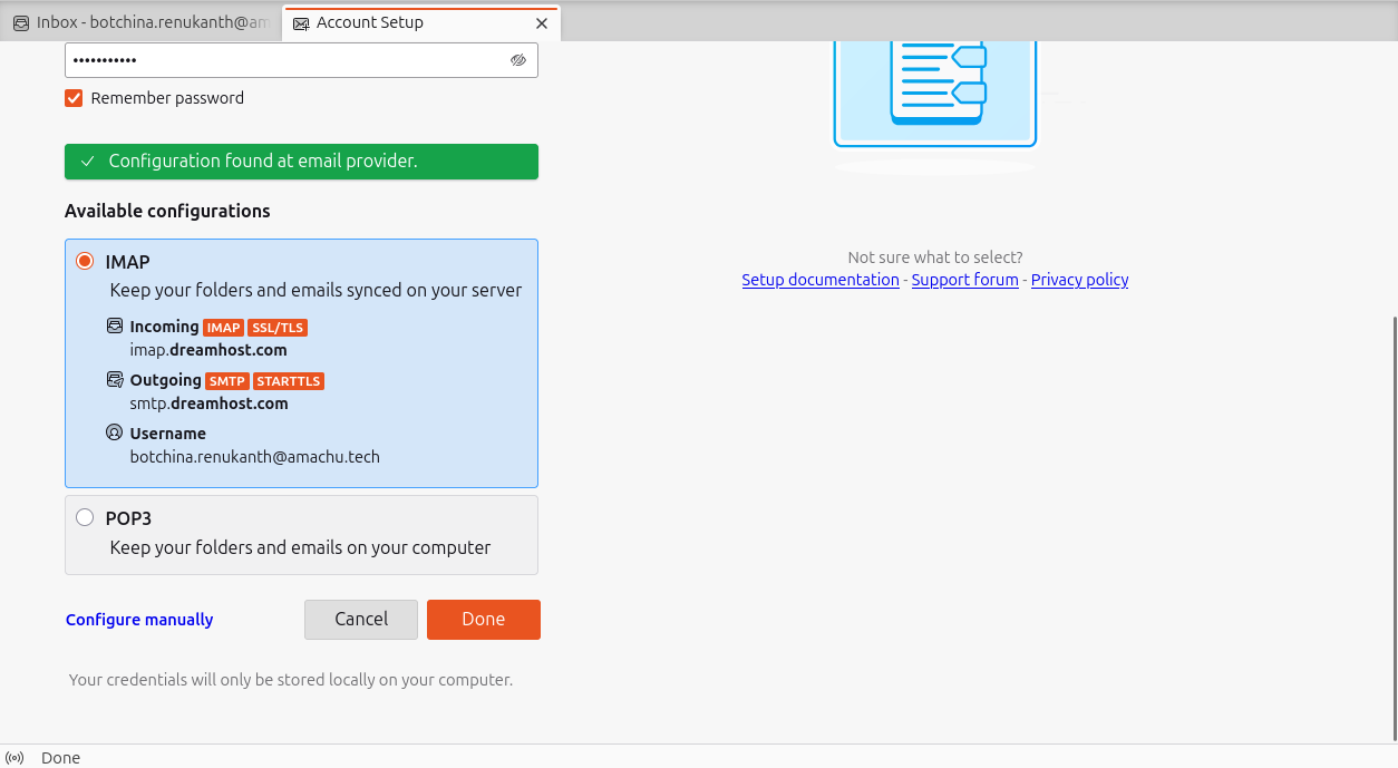 Step3. Thunderbird mail was configured.