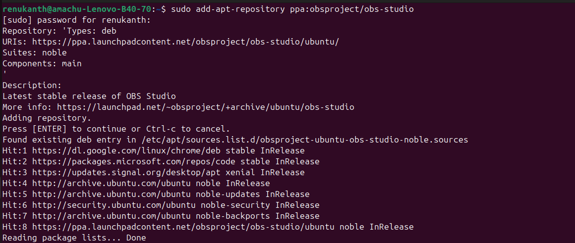 sudo add-apt-repository ppa:obsproject/obs-studio
