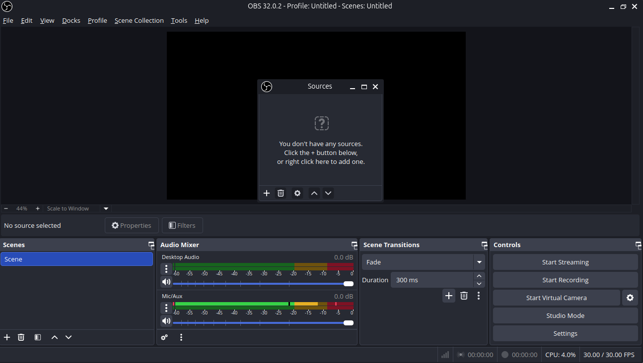 - Click OBS to run the application.