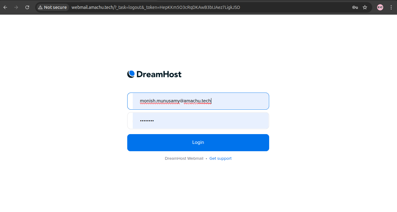 Step-1: Login in DreamHost Webmail website:(http://webmail.amachu.tech/)