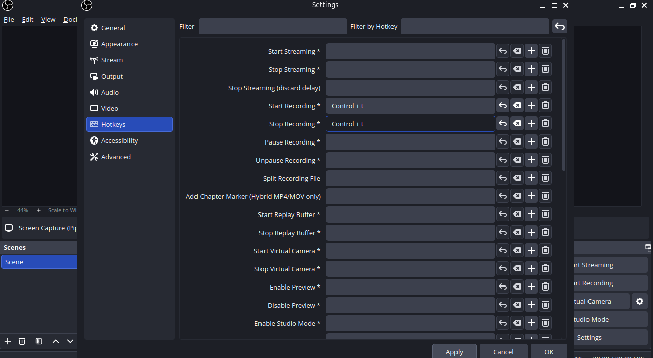 Learn how to set up hot keys for Starting and Stopping recordings with OBS. They have to be used to start and stop recordings.