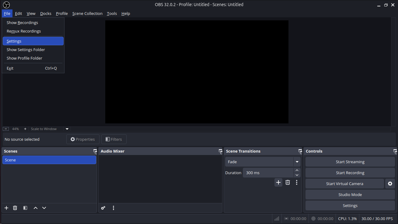 Step-1: Open OBS Studio then go to Settings by
